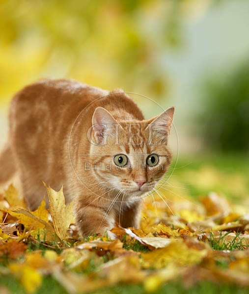 - 1, Alttiere, animals, anschleichen, Aussenaufnahme, Aussenaufnahmen, beobachten, beobachtet, Blatt, Blätter, Bourbon, Details, domestic animals, draussen, einer, eins, einzelner, erwachsener, erwachsenes, front, frontal, gehen, geht, Gras, Haustiere, Heimtiere, Herbstlaub, im freien, Katzen, lauern, lauert, mammals, Namen, pets, Pflanzen, profil, profile, Rasen, Säugetiere, schleicht, seite, seitlich, Tiere, von vorne, vorne, Wiesen
