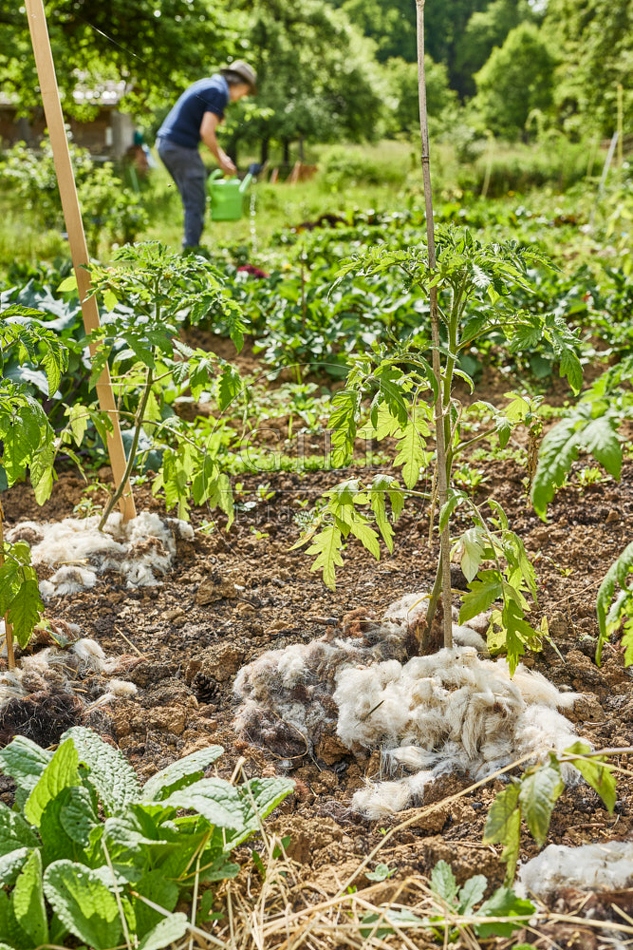 Gemüsegarten, Tomaten, Schafwolle