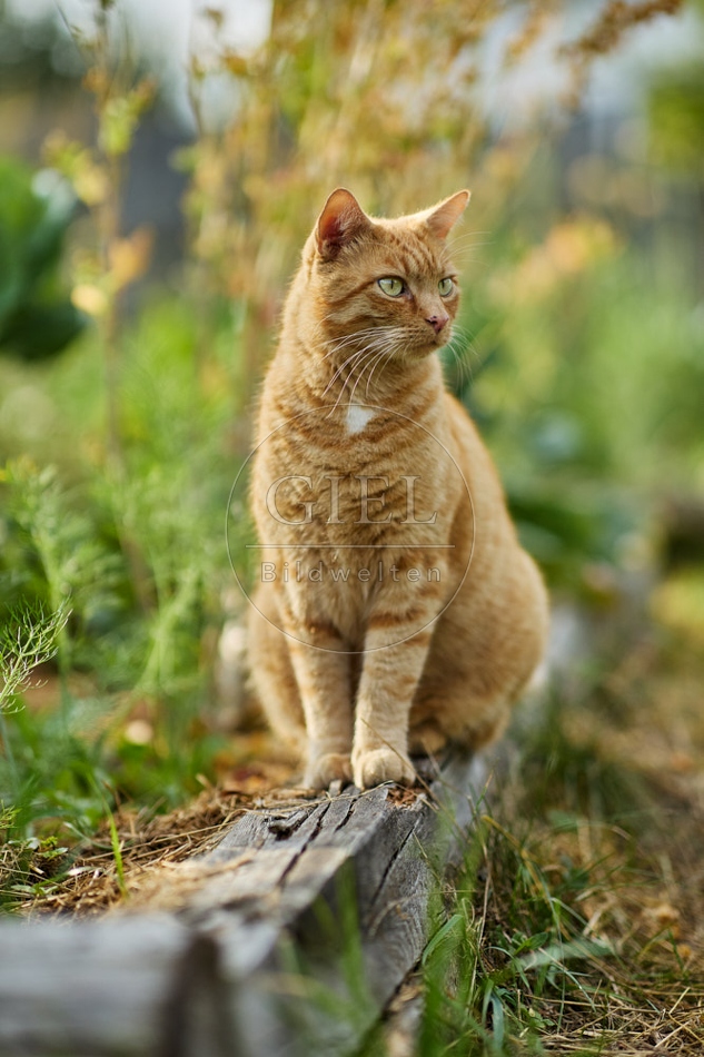 - Felis catus, Garten, Hauskatzen, Haustiere, Heimtiere, Katzen, Säugetiere, sitzen, sitzt
